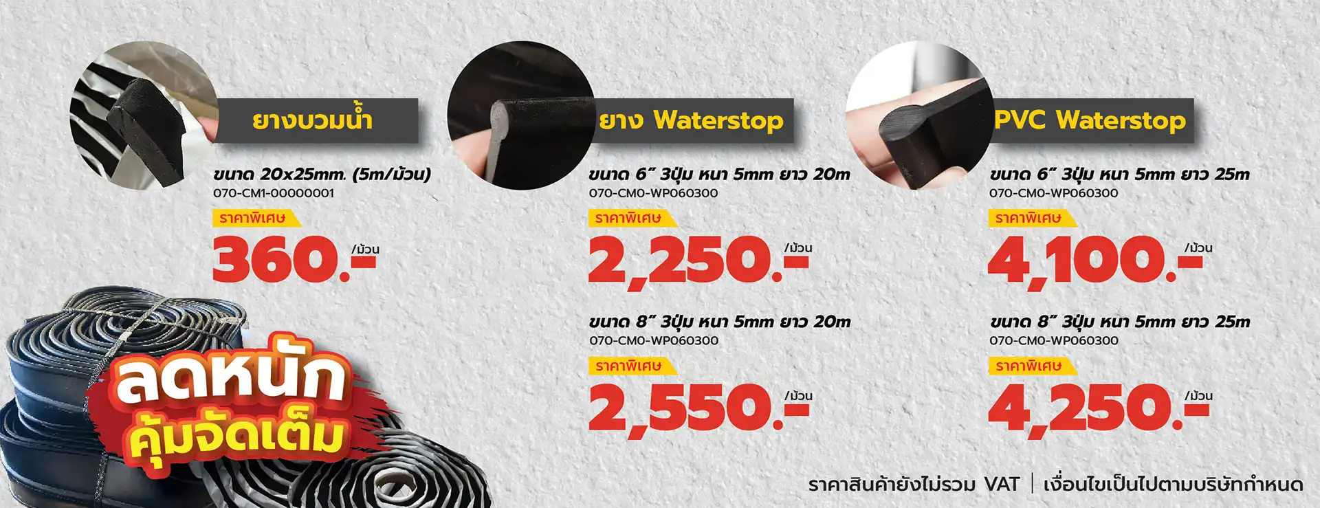 | ยางบวมน้ำ | 20x25mm. | 5m. | 360.- |