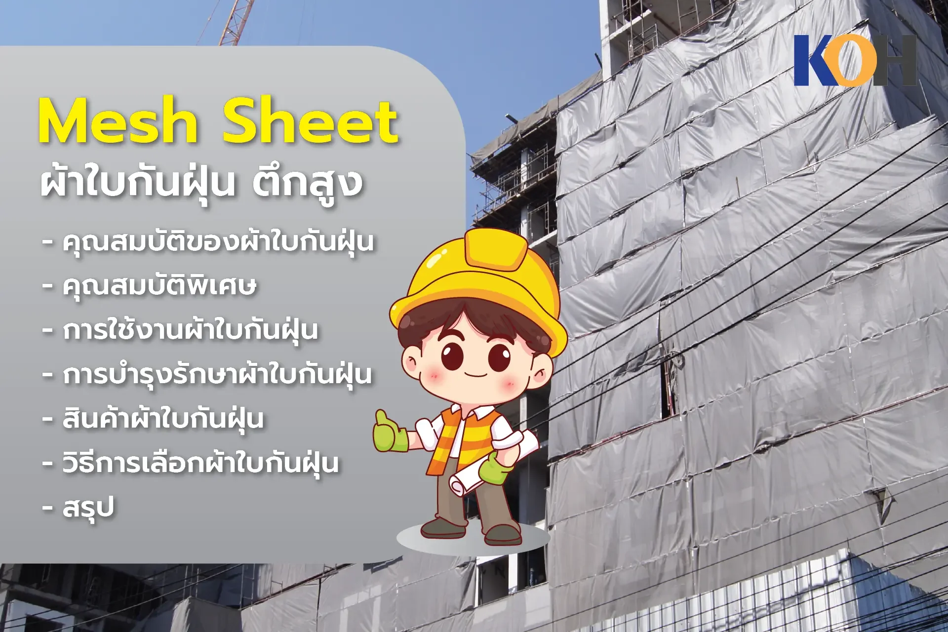 ผ้าใบกันฝุ่น KOH ผลิตจากวัสดุคุณภาพสูง ช่วยลดฝุ่น ป้องกันเศษวัสดุตกหล่น ทนทานต่อทุกสภาพอากาศ ระบายอากาศได้ดี ติดตั้งง่าย เหมาะสำหรับงานก่อสร้าง