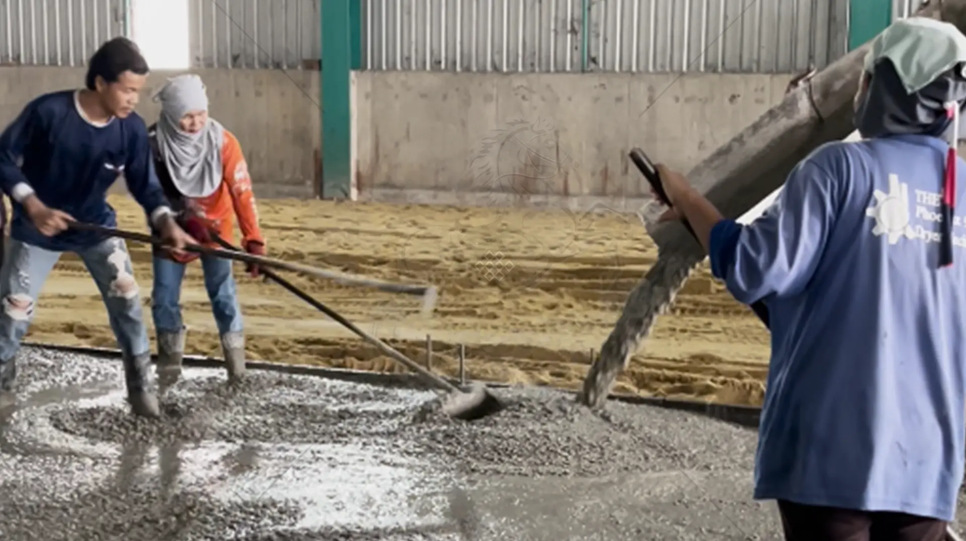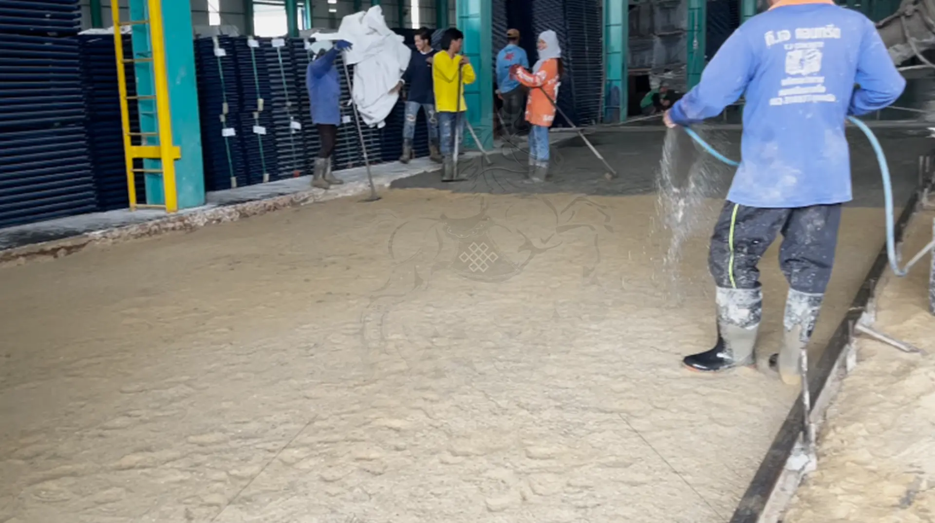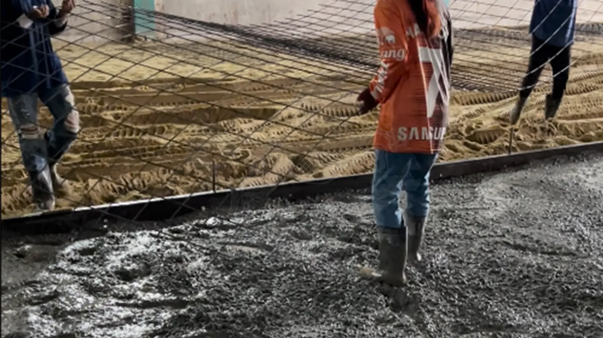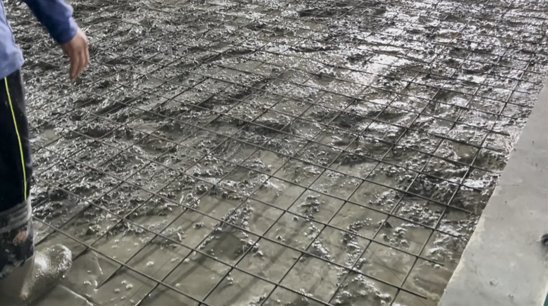 เทคอนกรีตอย่างสม่ำเสมอและใช้เครื่องมือปรับระดับอย่างระมัดระวัง เพื่อให้คอนกรีตครอบคลุมตะแกรงไวร์เมชทั้งหมด
