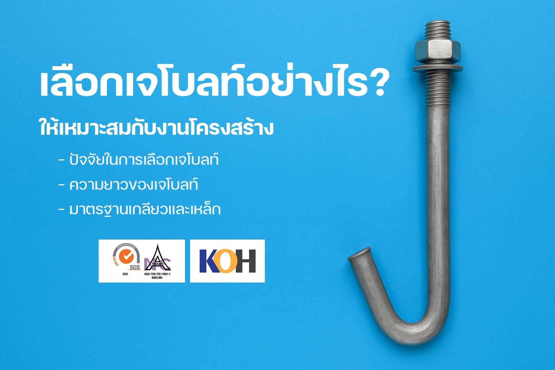 การเลือกเจโบลท์ให้เหมาะกับงานโครงสร้างไม่ใช่แค่เรื่องของขนาด แต่รวมถึงวัสดุ ความยาว มาตรฐาน และความแม่นยำในการติดตั้ง หากคุณต้องการความมั่นใจในทุกโครงการ เจโบลท์จาก KOH คือคำตอบที่แข็งแรง ปลอดภัย และคุ้มค่าในระยะยาว
