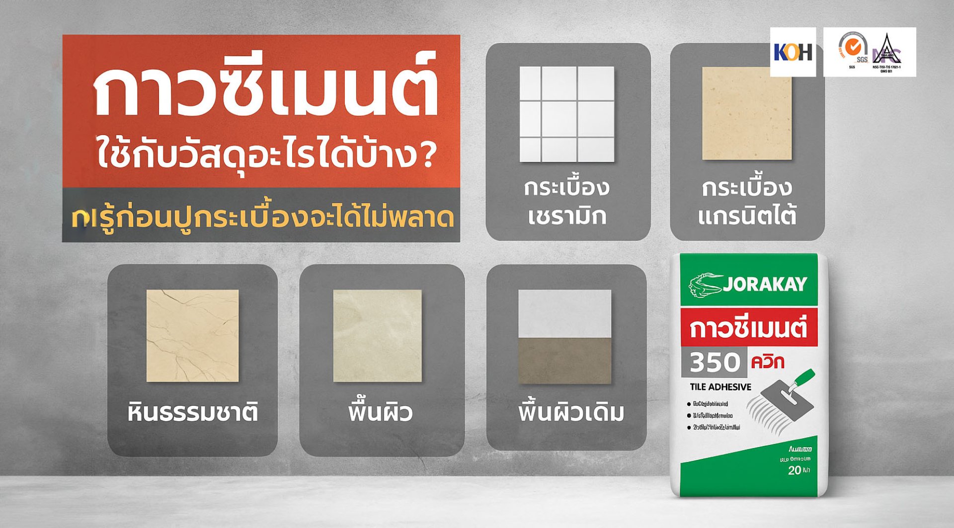 กาวซีเมนต์ ใช้กับวัสดุอะไรได้บ้าง? รู้ก่อนปูกระเบื้องจะได้ไม่พลาด | KOH