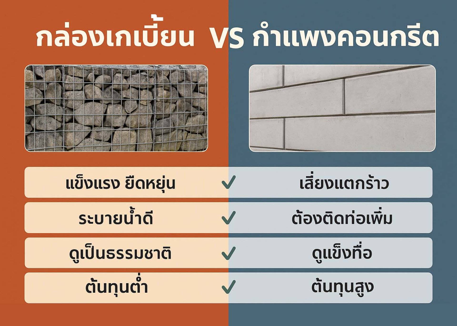 เปรียบเทียบ กล่องเกเบี้ยน VS กำแพงคอนกรีต