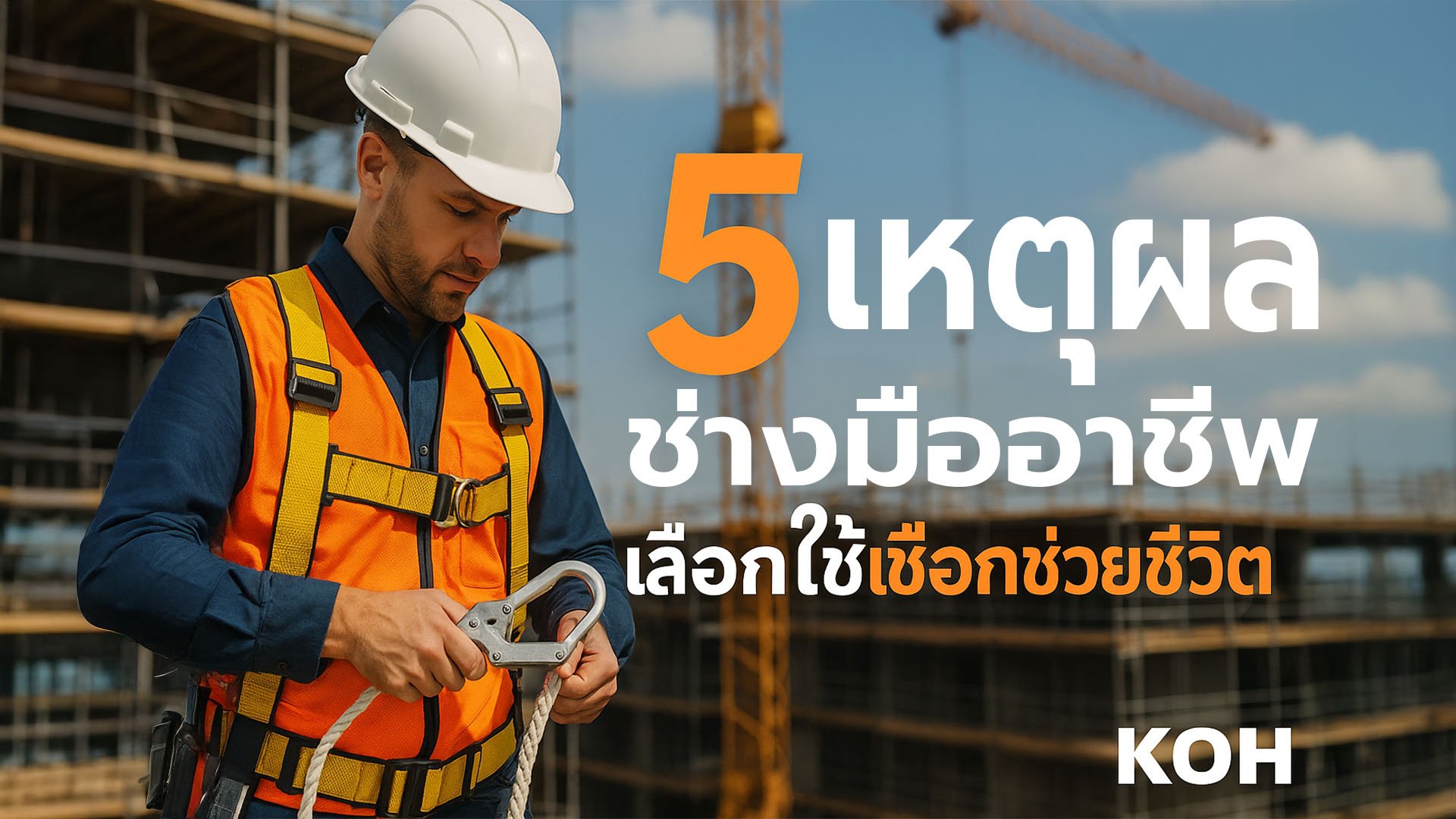 บริษัท เค.โอ.เอช.อินเตอร์เนชั่นแนล จำกัด ผู้นำเข้าและจัดจำหน่ายอุปกรณ์ก่อสร้างและอุตสาหกรรมคุณภาพสูง ขอนำเสนอเหตุผลหลัก 5 ประการที่ทำให้เชือกช่วยชีวิตเป็นตัวเลือกแรกสำหรับช่างมืออาชีพ
